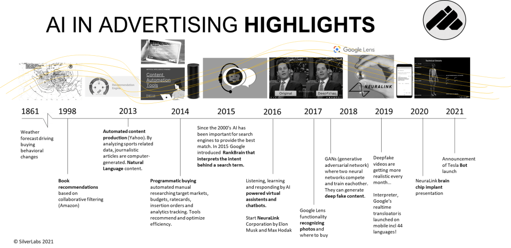AI heeft kunst, muziek en zelfs computer programma’s voortgebracht. Dit voelde een jaar geleden nog wat experimenteel aan, maar dit wordt steeds beter en toegepaster. Zo worden product beschrijvingen voor Google Adwords campagnes moeiteloos door machines geschreven. Een ander voorbeeld zijn highlights videos van sport evenementen. In combinatie met targeting biedt dit een waardevolle toepassing waarin de targeting tevens gepaard kan gaan met realtime geproduceerde gepersonaliseerde reclameuitingen.